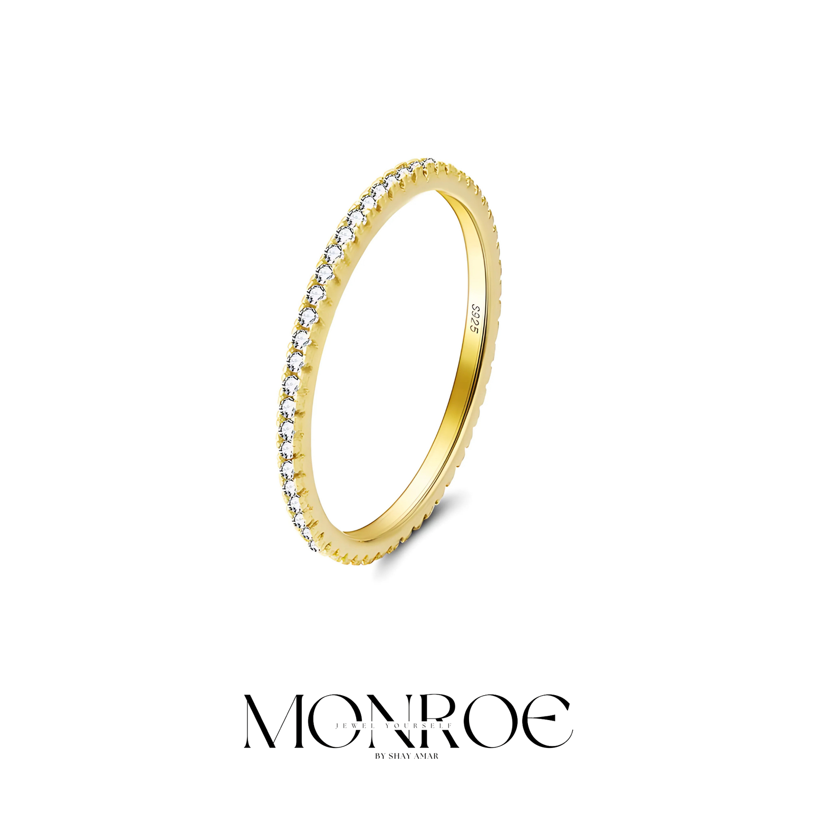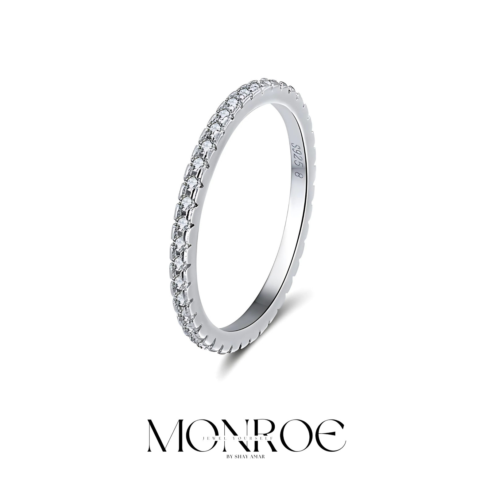 טבעת פס קלאסית משובצת לכל אורך הטבעת למראה קלאסי על זמני ומהמם