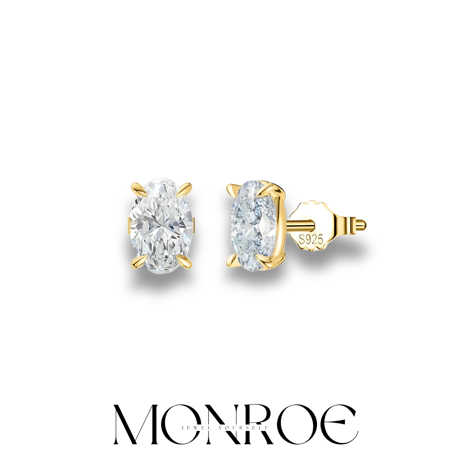 עגילי כסף טהור 925 בצבעים כסוף או בציפוי זהב 14k משובצות אבנים בחיתוך אובל אופנתי ויוקרתי