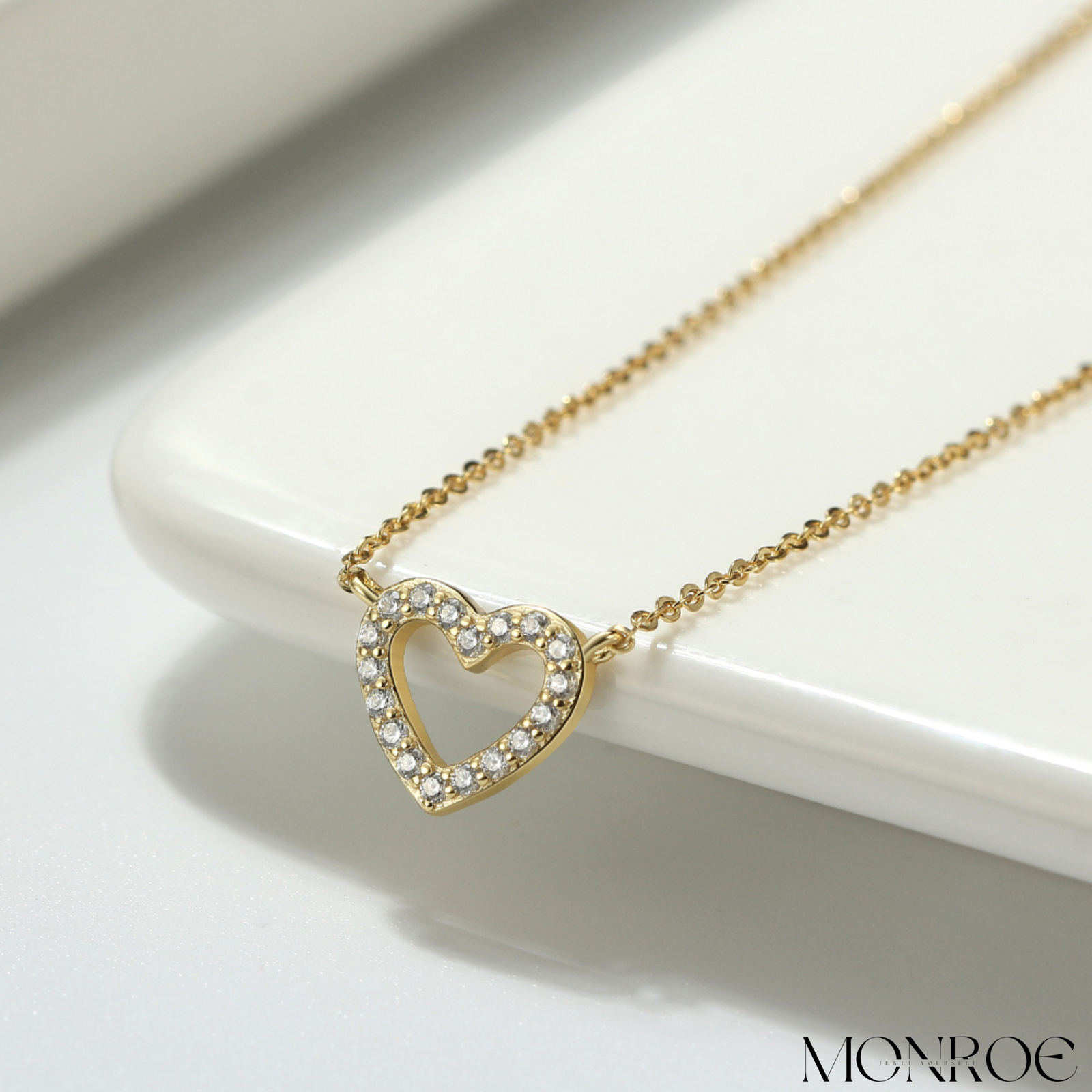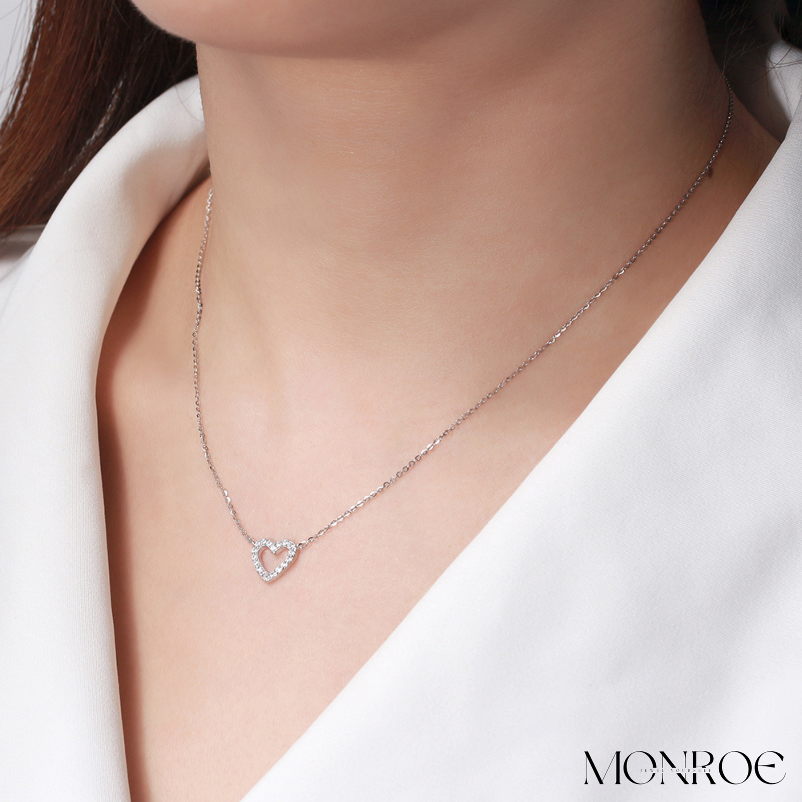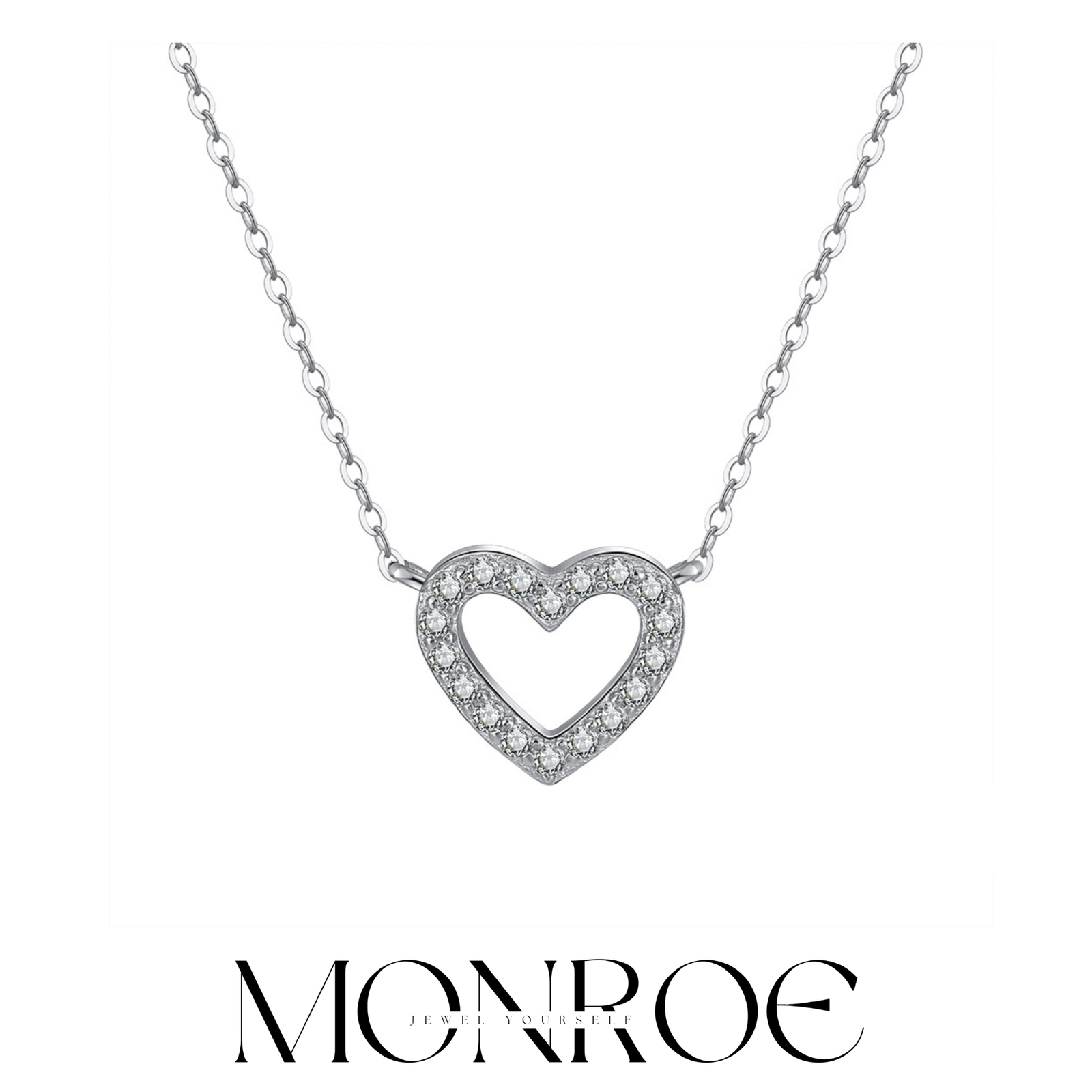 שרשרת כסף סטרלינג 925 עדינה בעיצוב לב משובץ זרקונים נוצצים
